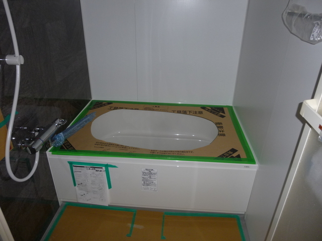 まだすべての工事が完了していないため、傷がつかないようにしっかりと養生してあります。