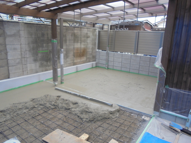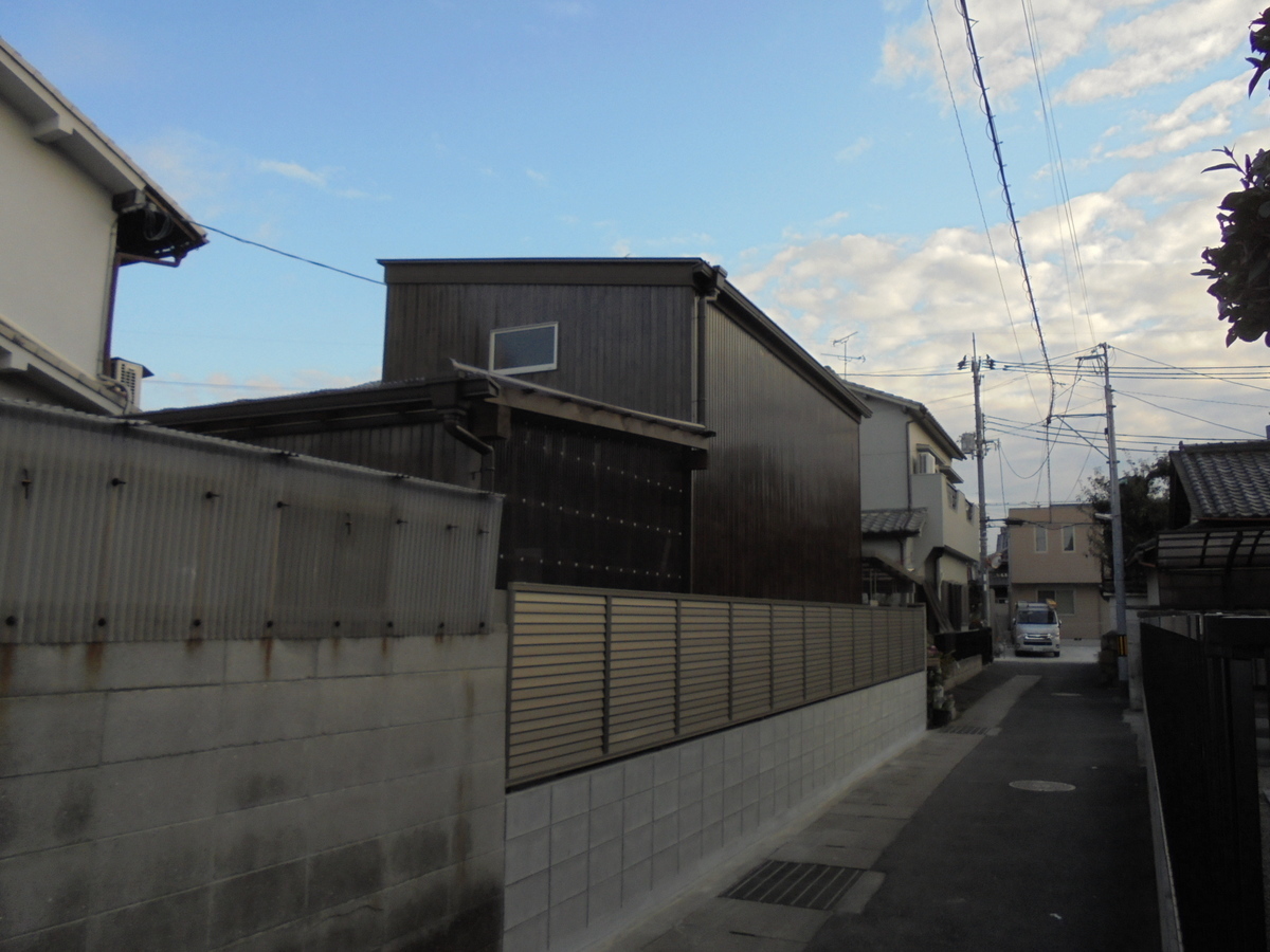 おじい様が建てられた離れを、物置に使っていたのですが、ガレージ部分が狭いので、建物を小さくしてガレージを広くしました。奥のスペースを物干しスペースとして使用する事にしました。